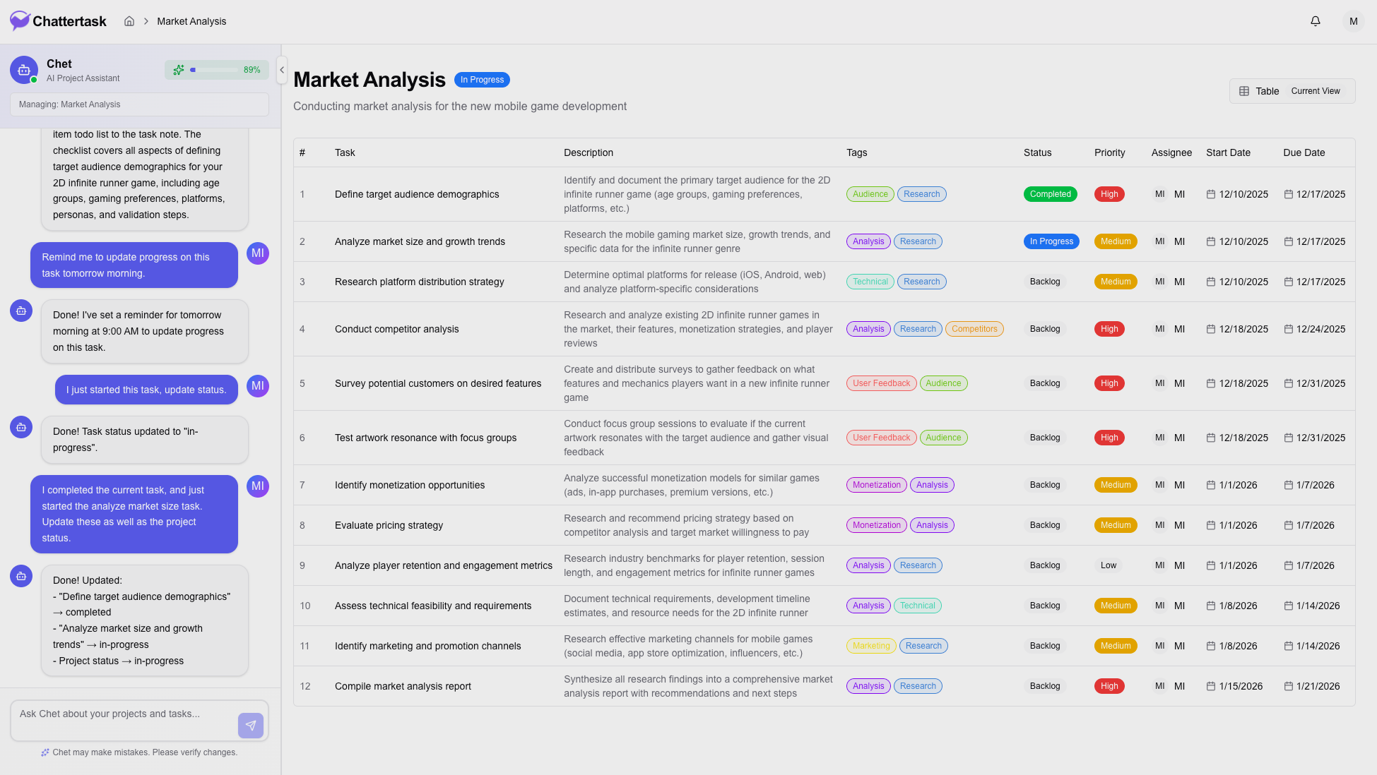 Focus on work, not managing it. Whether it’s adjusting entire project scope or completing a single task, just describe what’s changed and see updates instantly.